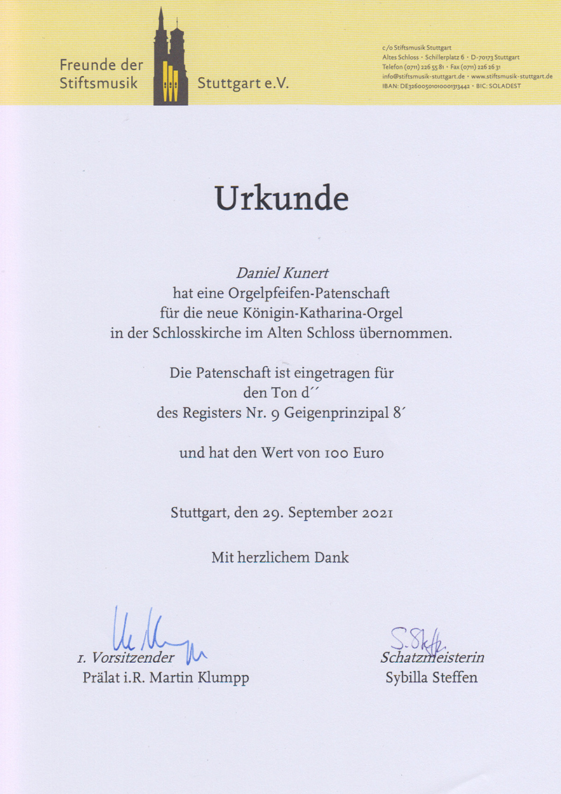 Informationen zum Projekt "Königin-Katharina-Orgel" |